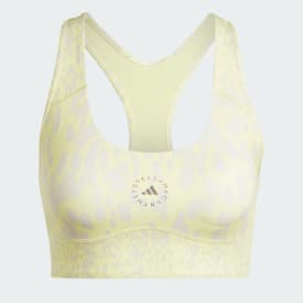 Push your workout to the next level in this bra from adidas by Stella McCartney. Designed to perform, it delivers the confidence you need for running, Pilates and barre. An allover print and racerback styling make a fashion-forward statement, while laser-cut perforations let the air flow for total comfort. Remove or keep the lightweight pads to get the support and coverage you need. This product is made with at least 70% recycled materials. By reusing materials that have already been created, we help to reduce waste and our reliance on finite resources and reduce the footprint of the products we make.