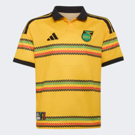 The Jamaica 26 x Bob Marley Home Jersey is a tribute to the vibrant spirit of music and the timeless style of football. This jersey's design captures the essence of the country's rich cultural heritage and the energy of the iconic sport. Whether your little ones are stepping onto the pitch or enjoying a fun day out, this jersey is crafted to let them express their enthusiasm in bold style. Climacool technology provides moisture management, for a cool, dry feel during big matches or busy days out. The doubleknit fabric offers a soft touch, for a comfortable feel throughout the day, while the button closure and collar add a touch of classic sporty style. The regular fit offers a sleek yet relaxed silhouette for distraction-free movement, and the iconic adidas 3-Stripes logo adds a touch of flair. From the park to the pitch, this jersey is a go-to for expressing their passion for the sport. Let them embrace the thrill and express their enthusiasm with adidas.