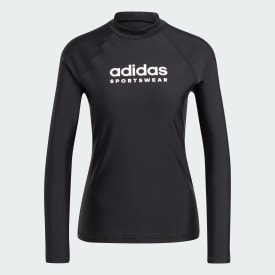 This sporty rash guard gives you a bit of extra coverage from sun and sand with style to match. The body-hugging fit moves with you, whether you're paddling out to the waves or lounging poolside. It's made from chlorine-resistant fabric so it can hold up to a whole summer of surfing or swimming. This product is made with at least 70% recycled materials. By reusing materials that have already been created, we help to reduce waste and our reliance on finite resources and reduce the footprint of the products we make.