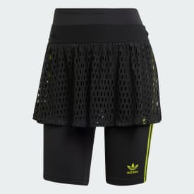 All the comfort for all your confidence. This adidas design combines a mesh skirt overlay with stretchy short leggings for a stylish twist. The elastic waist gives you the right fit every time, and a Trefoil silhouette print on the skirt adds a unique detail to the skirt. Signature 3-Stripes represent the brand you love. Made with a series of recycled materials, and at least 70% recycled content, this product represents just one of our solutions to help end plastic waste.