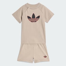 Introduce your little one to the iconic style of adidas with the Trefoil Short Tee Set. This adorable set is a wonderful choice for infants, combining fashion and convenience in one package. The set features a classic crew neck t-shirt adorned with a big Trefoil logo, paired with matching shorts. This outfit is crafted from a soft, single jersey material, helping your child stay comfortable throughout their daily adventures. Designed with practicality in mind, the shorts have a drawcord closure for easy adjustments, and the set has a regular fit that allows for freedom of movement. Let your little one explore the world in style with this timeless adidas set.